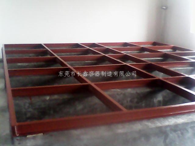 根据水箱板块尺寸确定槽钢的间距,首先将槽钢点焊固定,用水平尺校对,确保其平整然后再整体焊接。