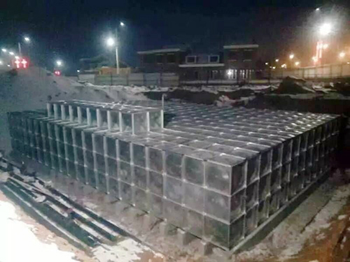 7、高强度的冲压板及箱内分布均匀的不锈钢拉筋使箱体承压均匀合理。标准冲压板块1000×1000、1000×500、500×500mm 2000×2000随意配装现场组装焊接,无需吊装设备。