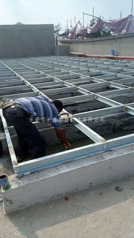 1.常规不锈钢水箱槽钢底座采用10#槽钢(Q235碳钢),如甲方要求也可用12#或其它型号,槽钢底座的横竖间距为1米,槽钢表面做防锈处理可刷防锈漆或做热镀锌。