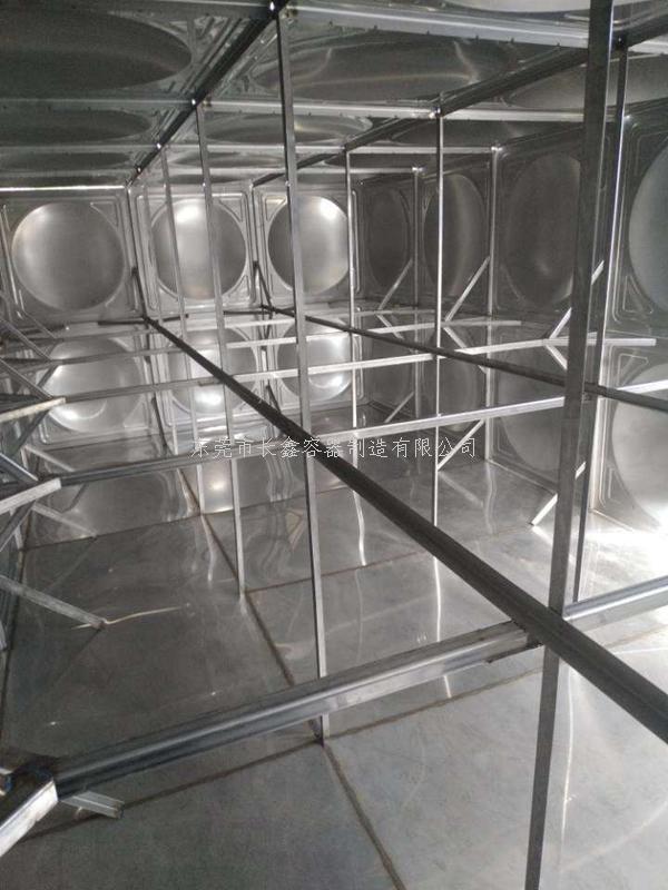 以304不锈钢水箱为例,内部拉筋采用304不锈钢角钢,厚度根据水箱高度从1.0至3.0不等,下层厚,上层薄。(如水箱为非常规使用水箱,人需要随时进出水箱,则可在内部设置不锈钢方管拉筋,放置刮伤操作人员)